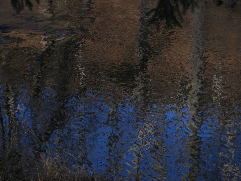 It’s time to hunker down and watch the ducks pass overhead. They cast luminous shadows, almost rainbow streaks, the kind of shimmering, shining that children see after it rains. No one else sees this. It haunts the eyes, slows the heart down, softens the gaze. A feather or two filter through the air. They’re like wisps of smoke, almost white, not quite grey. And the hermit is already sitting on the river bank, holding a book, the eternal cup of black tea, laced with honey. The evening is short this time of the year. Chorus of geese somewhere in the distance. It’s chilly here late in the day. Sky flushed behind the branches. Are there poems in the water, or have they been snagged up by the bridge? It’s a simple bridge, not too stable. It seems to float and sway with the wind, the sun, the evening coolness. Some people think it comes and goes, that it isn’t always there or here. It waits for the wind from the west, for the blue luster that comes before the snow.